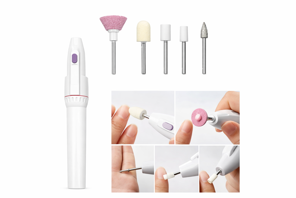 Agora ficou muito mais fácil e rápido fazer suas unhas em casa, permitindo limar, lustrar, brilhar e modelar suas unhas sem esforço, como no salão.