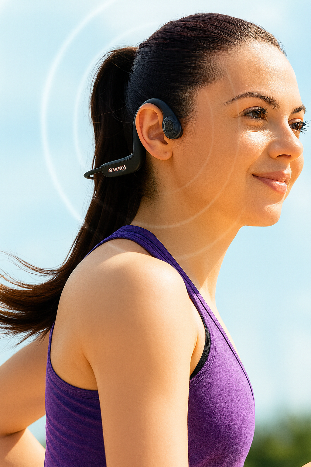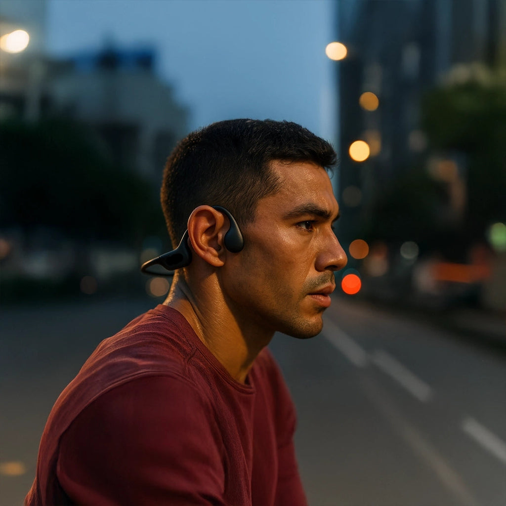 - Tecnologia de condução óssea que mantém os ouvidos livres